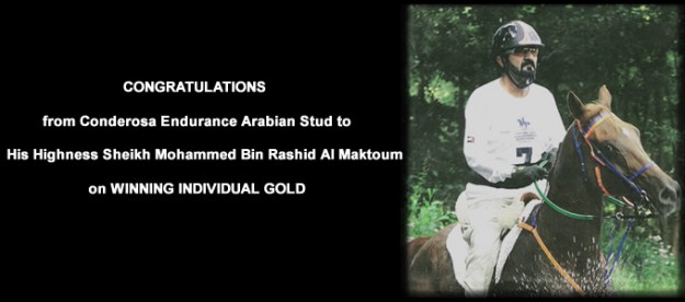 CONGRATULATIONS from Conderosa Endurance Arabian Stud to His Highness Sheikh Mohammed Bin Rashid Al Maktoum on WINNING INDIVIDUAL GOLD